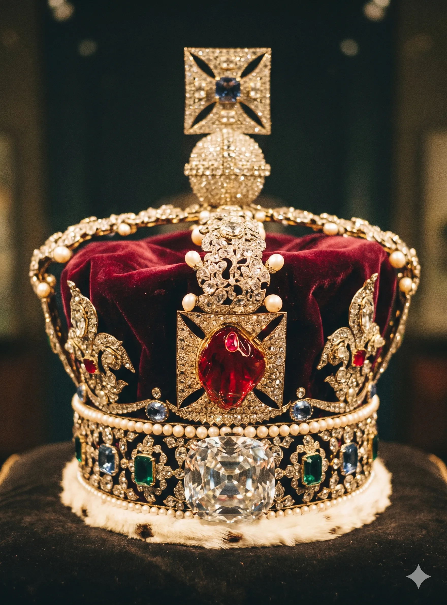 The stone was acquired by Edward of Woodstock, the Black Prince, in 1367 as payment after the Battle of Nájera. For five centuries it sat in the English crown jewels as "the Black Prince's Ruby," worn by Henry V at Agincourt and by every subsequent English monarch at coronation. Only in the 19th century, when gemological analysis had advanced enough to distinguish corundum from spinel, did jewelers determine the stone was spinel.